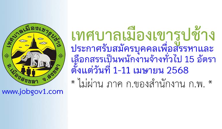 เทศบาลเมืองเขารูปช้าง รับสมัครบุคคลเพื่อสรรหาและเลือกสรรเป็นพนักงานจ้างทั่วไป 15 อัตรา ตั้งแต่วันที่ 1-11 เมษายน 2568