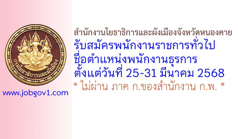 ประกาศจังหวัดหนองคาย เรื่อง รับสมัครบุคคลเพื่อเลือกสรรเป็นพนักงานราชการทั่วไป