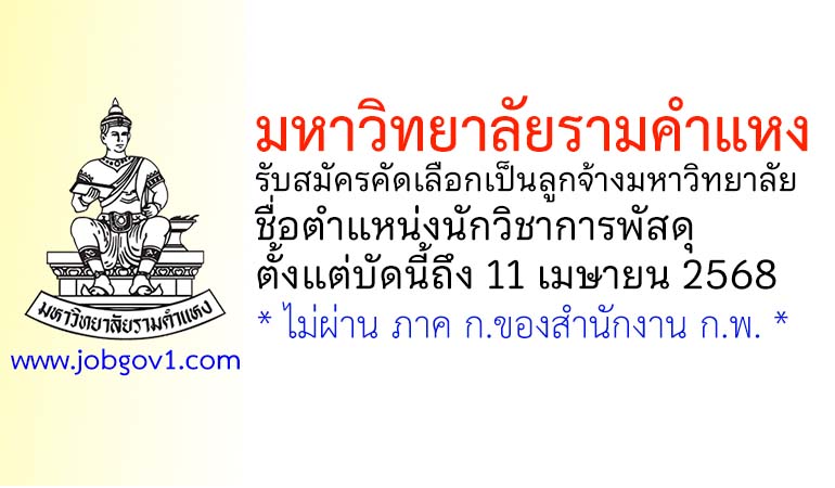 มหาวิทยาลัยรามคำแหง รับสมัครคัดเลือกเป็นลูกจ้างมหาวิทยาลัย ตำแหน่งนักวิชาการพัสดุ ตั้งแต่บัดนี้ถึง 11 เมษายน 2568