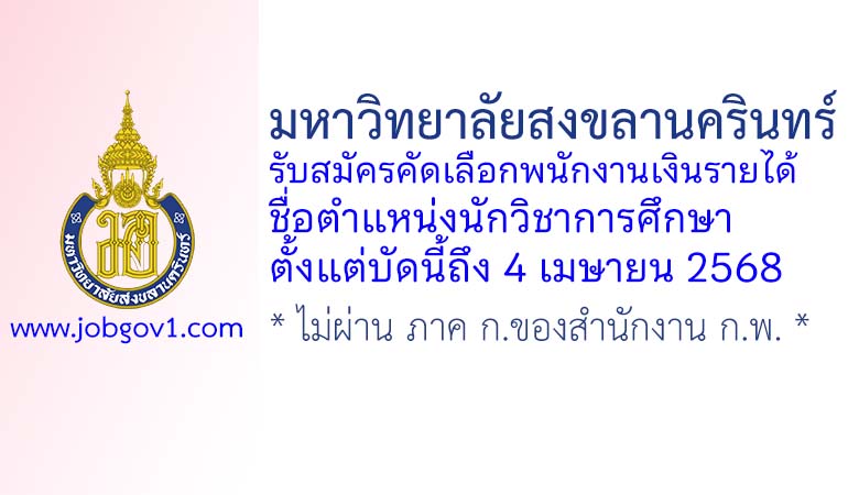 มหาวิทยาลัยสงขลานครินทร์ รับสมัครคัดเลือกพนักงานเงินรายได้ ตำแหน่งนักวิชาการศึกษา ตั้งแต่บัดนี้ถึง 4 เมษายน 2568
