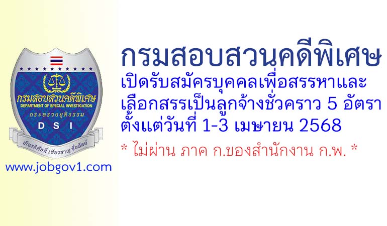 กรมสอบสวนคดีพิเศษ รับสมัครลูกจ้างชั่วคราว 5 อัตรา ตั้งแต่วันที่ 1-3 เมษายน 2568