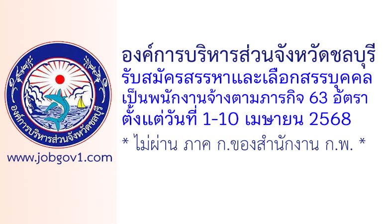 องค์การบริหารส่วนจังหวัดชลบุรี รับสมัครสรรหาและเลือกสรรบุคคลเป็นพนักงานจ้างตามภารกิจ 63 อัตรา ตั้งแต่วันที่ 1-10 เมษายน 2568