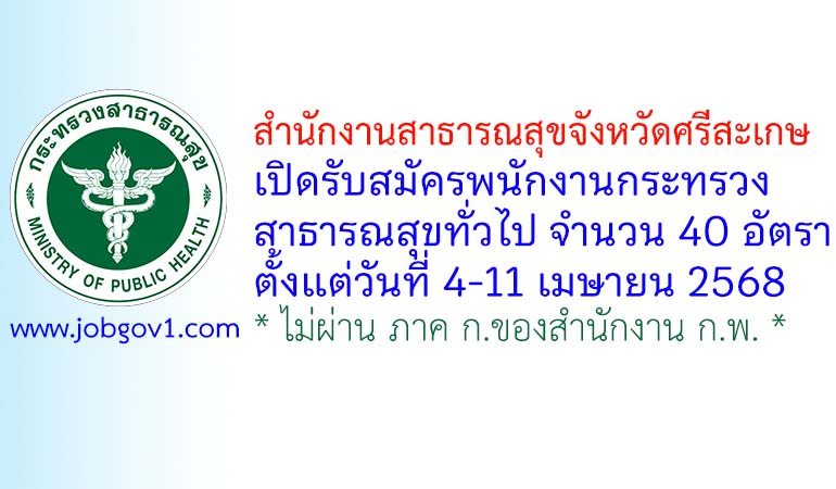 สำนักงานสาธารณสุขจังหวัดศรีสะเกษ รับสมัครพนักงานกระทรวงสาธารณสุขทั่วไป 40 อัตรา ตั้งแต่วันที่ 4-11 เมษายน 2568