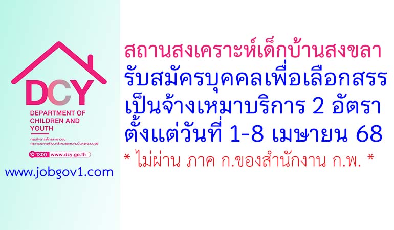 สถานสงเคราะห์เด็กบ้านสงขลา รับสมัครบุคคลเพื่อเลือกสรรเป็นจ้างเหมาบริการ 2 อัตรา ตั้งแต่วันที่ 1-8 เมษายน 2568
