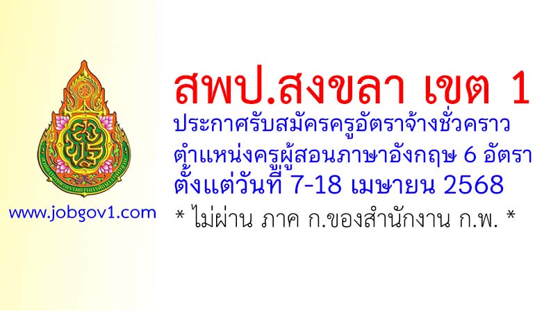 สพป.สงขลา เขต 1 รับสมัครครูอัตราจ้างชั่วคราว ตำแหน่งครูผู้สอนภาษาอังกฤษ 6 อัตรา ตั้งแต่วันที่ 7-18 เมษายน 2568