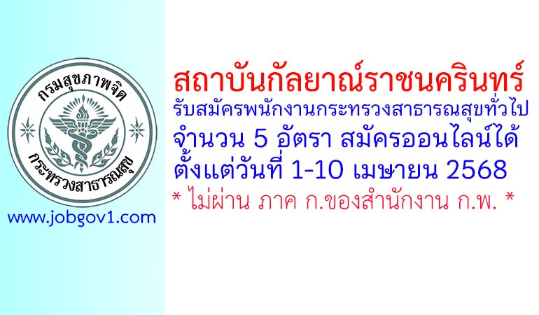 สถาบันกัลยาณ์ราชนครินทร์ รับสมัครพนักงานกระทรวงสาธารณสุขทั่วไป 5 อัตรา ตั้งแต่วันที่ 1-10 เมษายน 2568
