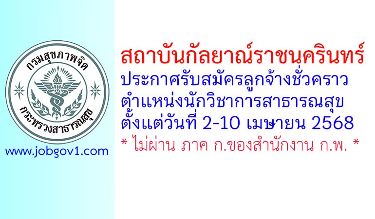 สถาบันกัลยาณ์ราชนครินทร์ รับสมัครลูกจ้างชั่วคราว ตำแหน่งนักวิชาการสาธารณสุข ตั้งแต่วันที่ 2-10 เมษายน 2568