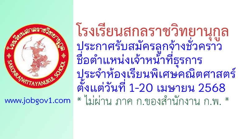 โรงเรียนสกลราชวิทยานุกูล รับสมัครลูกจ้างชั่วคราว ตำแหน่งเจ้าหน้าที่ธุรการ ประจำห้องเรียนพิเศษคณิตศาสตร์ ตั้งแต่วันที่ 1-20 เมษายน 2568
