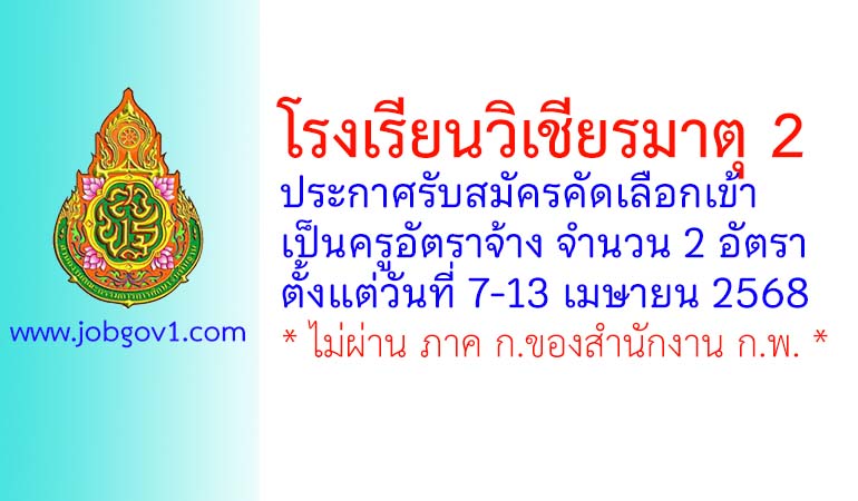 โรงเรียนวิเชียรมาตุ 2 รับสมัครครูอัตราจ้าง จำนวน 2 อัตรา ตั้งแต่วันที่ 7-13 เมษายน 2568