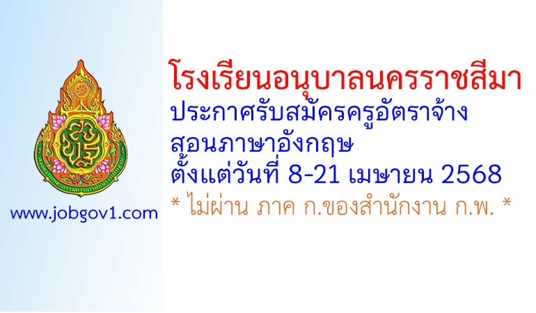 โรงเรียนอนุบาลนครราชสีมา รับสมัครครูอัตราจ้าง สอนภาษาอังกฤษ ตั้งแต่วันที่ 8-21 เมษายน 2568