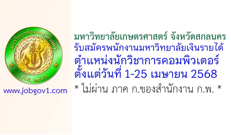 มหาวิทยาลัยเกษตรศาสตร์ จังหวัดสกลนคร รับสมัครพนักงานมหาวิทยาลัยเงินรายได้ ตำแหน่งนักวิชาการคอมพิวเตอร์ ตั้งแต่วันที่ 1-25 เมษายน 2568