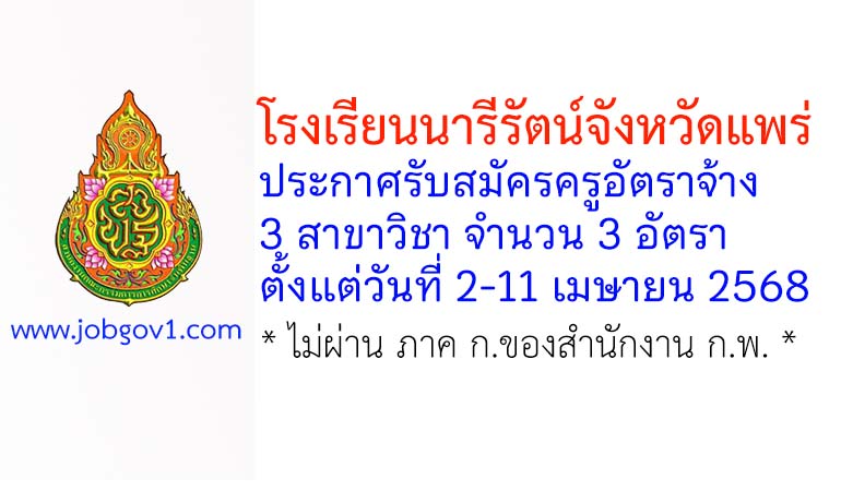 โรงเรียนนารีรัตน์จังหวัดแพร่ รับสมัครครูอัตราจ้าง 3 อัตรา ตั้งแต่วันที่ 2-11 เมษายน 2568