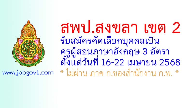 สพป.สงขลา เขต 2 รับสมัครคัดเลือกครูผู้สอนภาษาอังกฤษ 3 อัตรา ตั้งแต่วันที่ 16-22 เมษายน 2568