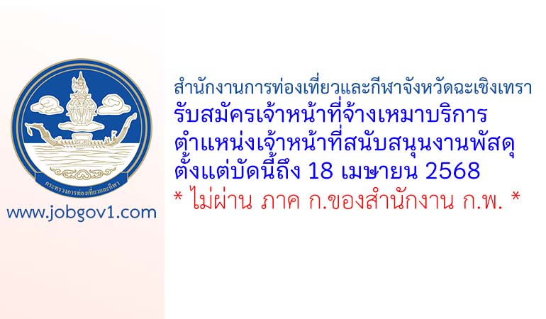 สำนักงานการท่องเที่ยวและกีฬาจังหวัดฉะเชิงเทรา รับสมัครเจ้าหน้าที่จ้างเหมาบริการ ตำแหน่งเจ้าหน้าที่สนับสนุนงานพัสดุ ตั้งแต่บัดนี้ถึง 18 เมษายน 2568