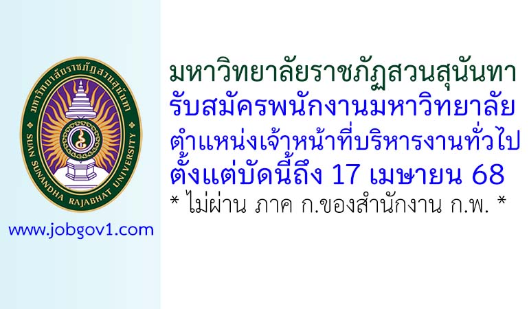 มหาวิทยาลัยราชภัฏสวนสุนันทา รับสมัครพนักงานมหาวิทยาลัย ตำแหน่งเจ้าหน้าที่บริหารงานทั่วไป ตั้งแต่บัดนี้ถึง 17 เมษายน 2568