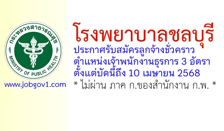 โรงพยาบาลชลบุรี รับสมัครลูกจ้างชั่วคราว ตำแหน่งเจ้าพนักงานธุรการ 3 อัตรา ตั้งแต่บัดนี้ถึง 10 เมษายน 2568