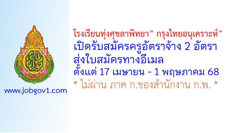 โรงเรียนทุ่งศุขลาพิทยา” กรุงไทยอนุเคราะห์” รับสมัครครูอัตราจ้าง 2 อัตรา ตั้งแต่ 17 เมษายน – 1 พฤษภาคม 2568