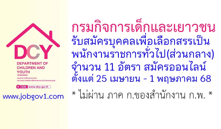 ประกาศกรมกิจการเด็กและเยาวชน รับสมัครบุคคลเพื่อเลือกสรรเป็นพนักงานราชการทั่วไป ครั้งที่ 1/2568 (ส่วนกลาง)