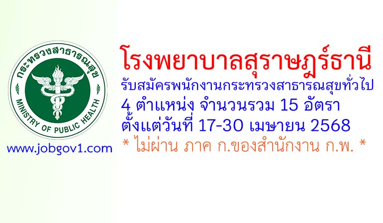โรงพยาบาลสุราษฎร์ธานี รับสมัครพนักงานกระทรวงสาธารณสุขทั่วไป 15 อัตรา ตั้งแต่วันที่ 17-30 เมษายน 2568