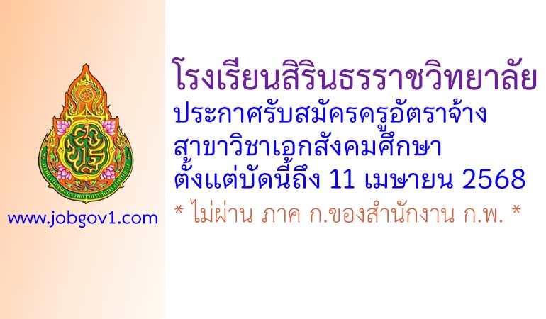 โรงเรียนสิรินธรราชวิทยาลัย รับสมัครครูอัตราจ้าง สาขาวิชาเอกสังคมศึกษา ตั้งแต่บัดนี้ถึง 11 เมษายน 2568