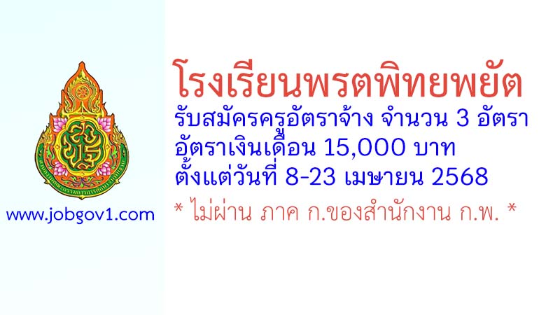 โรงเรียนพรตพิทยพยัต รับสมัครครูอัตราจ้าง จำนวน 3 อัตรา ตั้งแต่วันที่ 8-23 เมษายน 2568