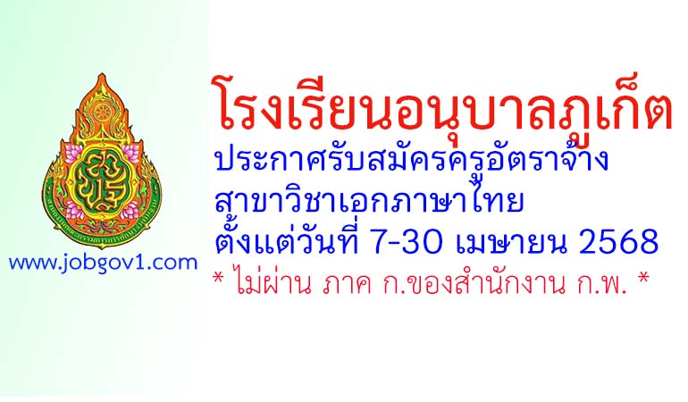 โรงเรียนอนุบาลภูเก็ต รับสมัครครูอัตราจ้าง สาขาวิชาเอกภาษาไทย ตั้งแต่วันที่ 7-30 เมษายน 2568