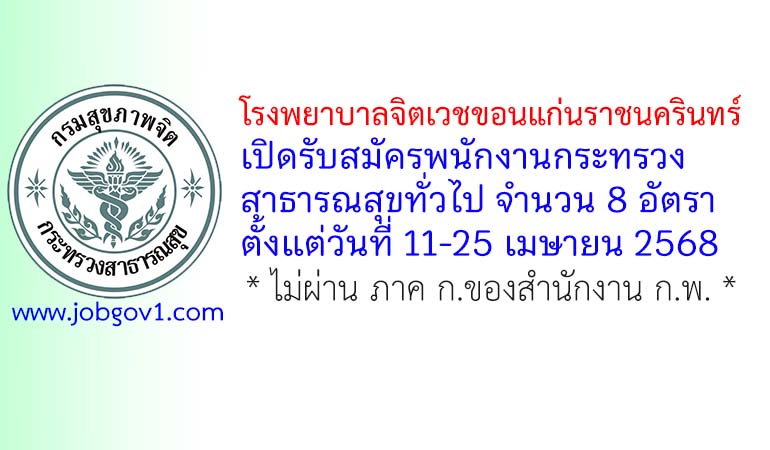 โรงพยาบาลจิตเวชขอนแก่นราชนครินทร์ รับสมัครพนักงานกระทรวงสาธารณสุขทั่วไป 8 อัตรา ตั้งแต่วันที่ 11-25 เมษายน 2568