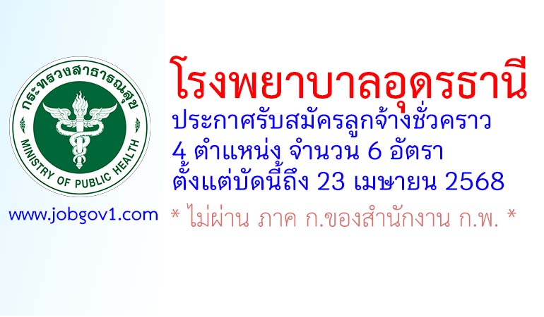 โรงพยาบาลอุดรธานี รับสมัครลูกจ้างชั่วคราว 6 อัตรา ตั้งแต่บัดนี้ถึง 23 เมษายน 2568