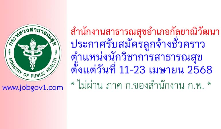 สำนักงานสาธารณสุขอำเภอกัลยาณิวัฒนา รับสมัครลูกจ้างชั่วคราว ตำแหน่งนักวิชาการสาธารณสุข ตั้งแต่วันที่ 11-23 เมษายน 2568