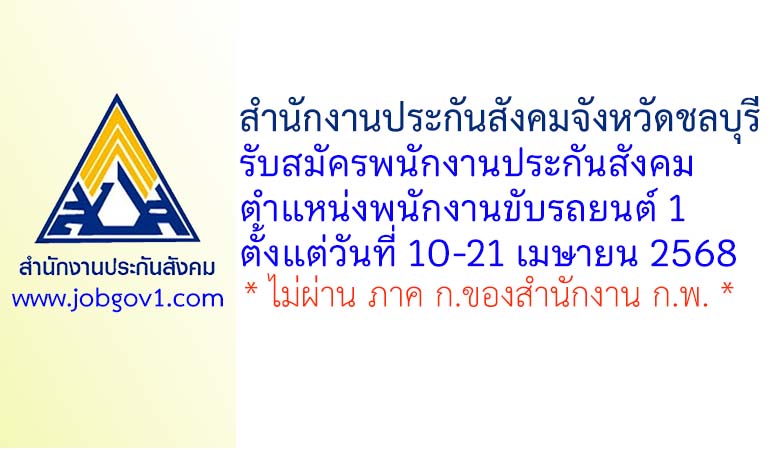 สำนักงานประกันสังคมจังหวัดชลบุรี รับสมัครพนักงานประกันสังคม ตำแหน่งพนักงานขับรถยนต์ 1 ตั้งแต่วันที่ 10-21 เมษายน 2568