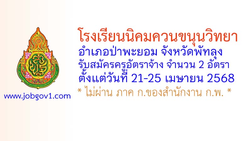 โรงเรียนนิคมควนขนุนวิทยา รับสมัครครูอัตราจ้าง จำนวน 2 อัตรา ตั้งแต่วันที่ 21-25 เมษายน 2568
