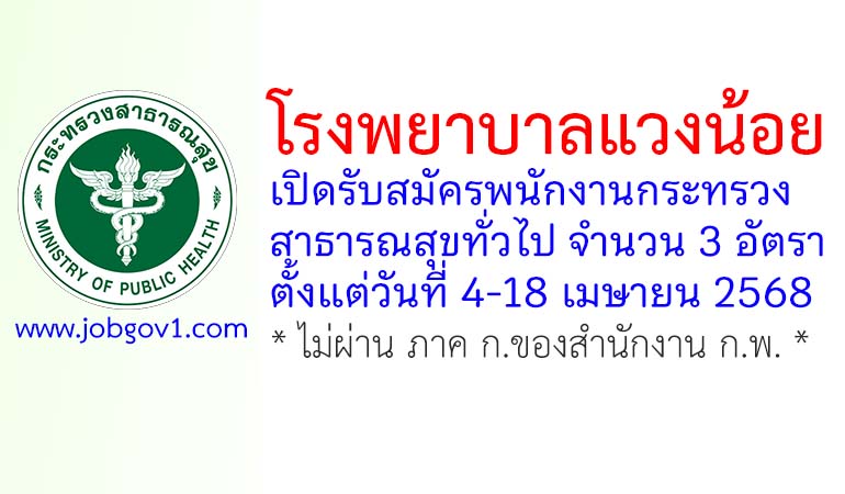 โรงพยาบาลแวงน้อย รับสมัครพนักงานกระทรวงสาธารณสุขทั่วไป 3 อัตรา ตั้งแต่วันที่ 4-18 เมษายน 2568