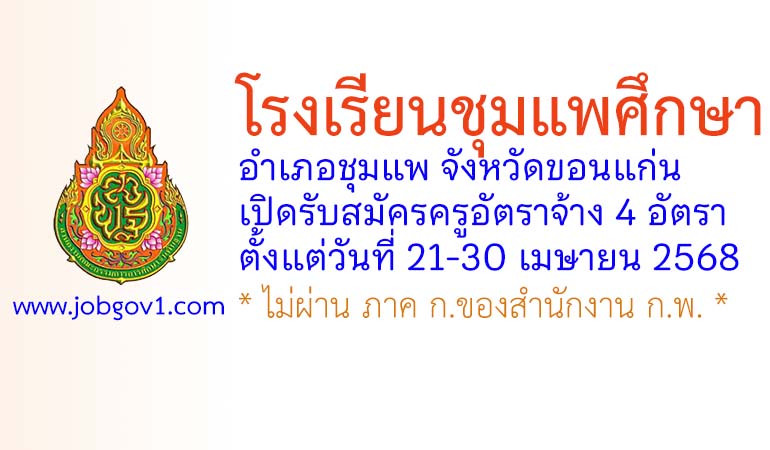 โรงเรียนชุมแพศึกษา รับสมัครครูอัตราจ้าง 4 อัตรา ตั้งแต่วันที่ 21-30 เมษายน 2568
