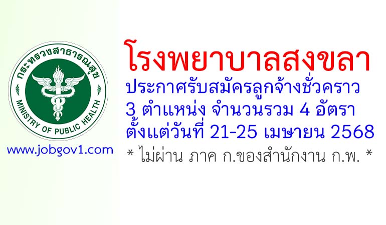 โรงพยาบาลสงขลา รับสมัครลูกจ้างชั่วคราว 4 อัตรา ตั้งแต่วันที่ 21-25 เมษายน 2568