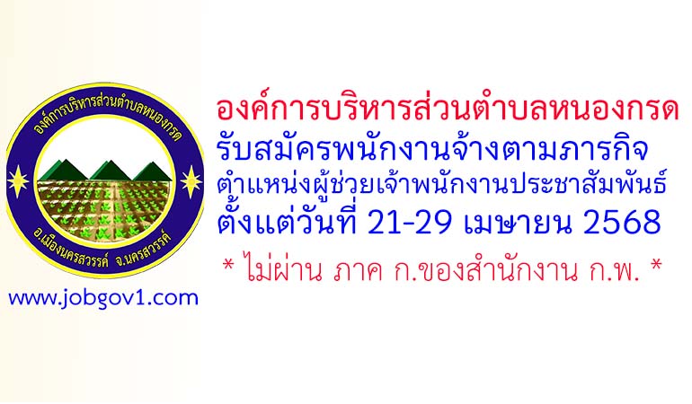 องค์การบริหารส่วนตำบลหนองกรด รับสมัครพนักงานจ้างตามภารกิจ ตำแหน่งผู้ช่วยเจ้าพนักงานประชาสัมพันธ์ ตั้งแต่วันที่ 21-29 เมษายน 2568