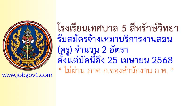 โรงเรียนเทศบาล 5 สีหรักษ์วิทยา รับสมัครจ้างเหมาบริการงานสอน(ครู) จำนวน 2 อัตรา ตั้งแต่บัดนี้ถึง 25 เมษายน 2568