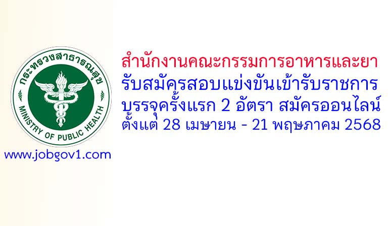 สำนักงานคณะกรรมการอาหารและยา รับสมัครสอบแข่งขันเข้ารับราชการ บรรจุครั้งแรก 2 อัตรา ตั้งแต่ 28 เมษายน – 21 พฤษภาคม 2568