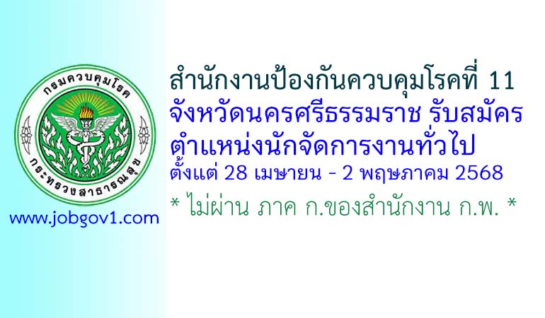 สำนักงานป้องกันควบคุมโรคที่ 11 จังหวัดนครศรีธรรมราช รับสมัครลูกจ้างชั่วคราว ตำแหน่งนักจัดการงานทั่วไป ตั้งแต่ 28 เมษายน – 2 พฤษภาคม 2568