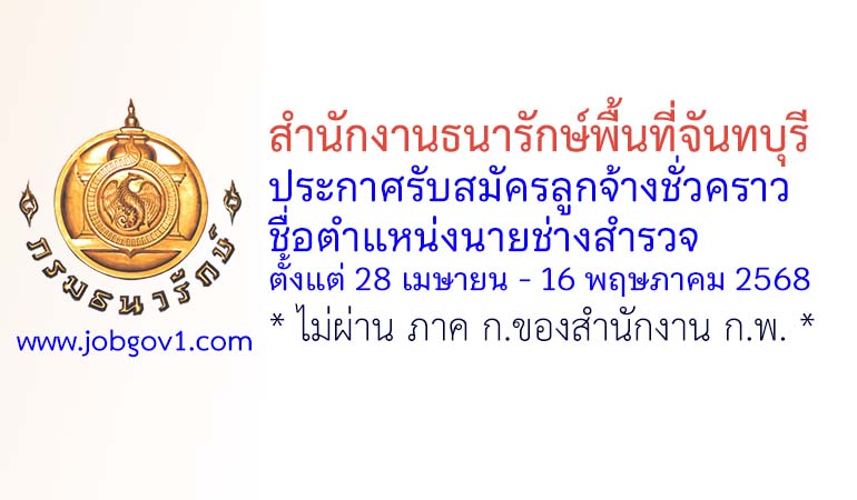 สำนักงานธนารักษ์พื้นที่จันทบุรี รับสมัครลูกจ้างชั่วคราว ตำแหน่งนายช่างสำรวจ ตั้งแต่ 28 เมษายน – 16 พฤษภาคม 2568
