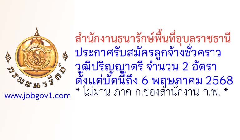 สำนักงานธนารักษ์พื้นที่อุบลราชธานี รับสมัครลูกจ้างชั่วคราว 2 อัตรา ตั้งแต่บัดนี้ถึง 6 พฤษภาคม 2568