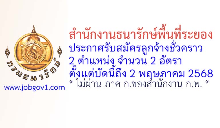 สำนักงานธนารักษ์พื้นที่ระยอง รับสมัครลูกจ้างชั่วคราว 2 อัตรา ตั้งแต่บัดนี้ถึง 2 พฤษภาคม 2568
