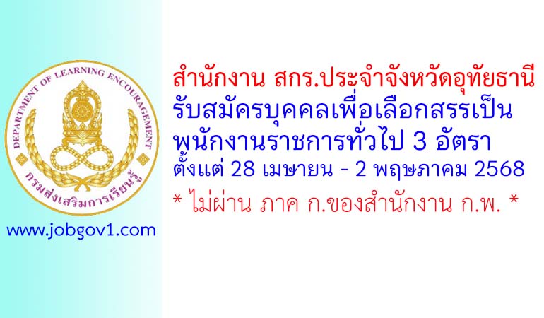 ประกาศสำนักงานส่งเสริมการเรียนรู้ประจำจังหวัดอุทัยธานี เรื่อง รับสมัครบุคคลเพื่อสรรหาและเลือกสรรเป็นพนักงานราชการทั่วไป