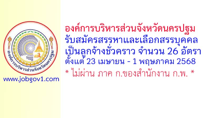 องค์การบริหารส่วนจังหวัดนครปฐม รับสมัครสรรหาและเลือกสรรบุคคลเป็นลูกจ้างชั่วคราว 26 อัตรา ตั้งแต่ 23 เมษายน – 1 พฤษภาคม 2568