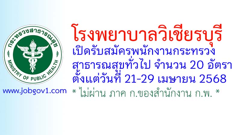 โรงพยาบาลวิเชียรบุรี รับสมัครพนักงานกระทรวงสาธารณสุขทั่วไป 20 อัตรา ตั้งแต่วันที่ 21-29 เมษายน 2568