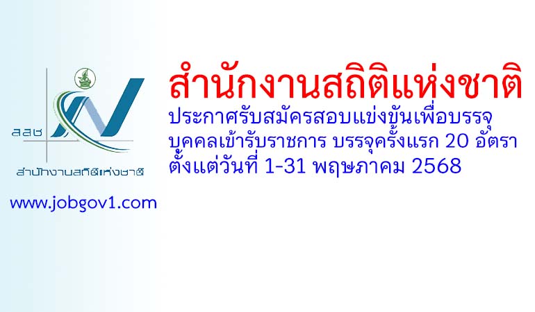 สำนักงานสถิติแห่งชาติ รับสมัครสอบแข่งขันเพื่อบรรจุและแต่งตั้งบุคคลเข้ารับราชการ บรรจุครั้งแรก 20 อัตรา ตั้งแต่วันที่ 1-31 พฤษภาคม 2568