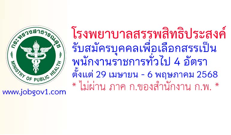 โรงพยาบาลสรรพสิทธิประสงค์ รับสมัครบุคคลเพื่อเลือกสรรเป็นพนักงานราชการทั่วไป 4 อัตรา ตั้งแต่ 29 เมษายน – 6 พฤษภาคม 2568