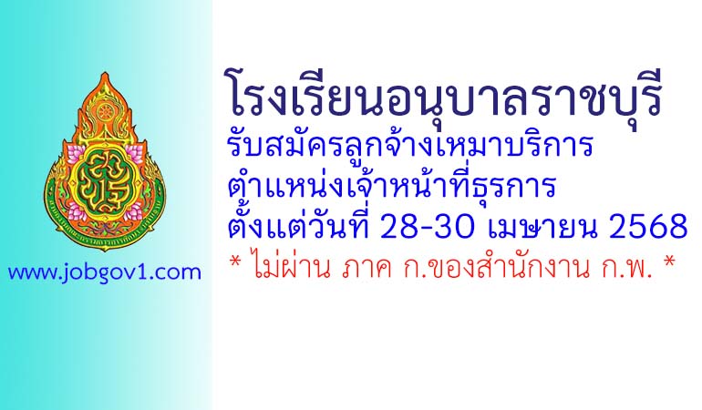 โรงเรียนอนุบาลราชบุรี รับสมัครลูกจ้างเหมาบริการ ตำแหน่งเจ้าหน้าที่ธุรการ ตั้งแต่วันที่ 28-30 เมษายน 2568