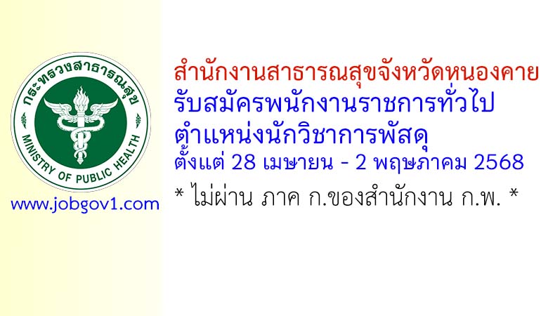 สำนักงานสาธารณสุขจังหวัดหนองคาย รับสมัครพนักงานราชการทั่วไป ตำแหน่งนักวิชาการพัสดุ ตั้งแต่ 28 เมษายน – 2 พฤษภาคม 2568