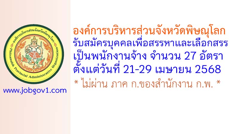 องค์การบริหารส่วนจังหวัดพิษณุโลก รับสมัครบุคคลเพื่อสรรหาและเลือกสรรเป็นพนักงานจ้าง 27 อัตรา ตั้งแต่วันที่ 21-29 เมษายน 2568