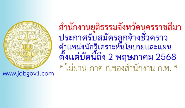 สำนักงานยุติธรรมจังหวัดนครราชสีมา รับสมัครลูกจ้างชั่วคราว ตำแหน่งนักวิเคราะห์นโยบายและแผน ตั้งแต่บัดนี้ถึง 2 พฤษภาคม 2568